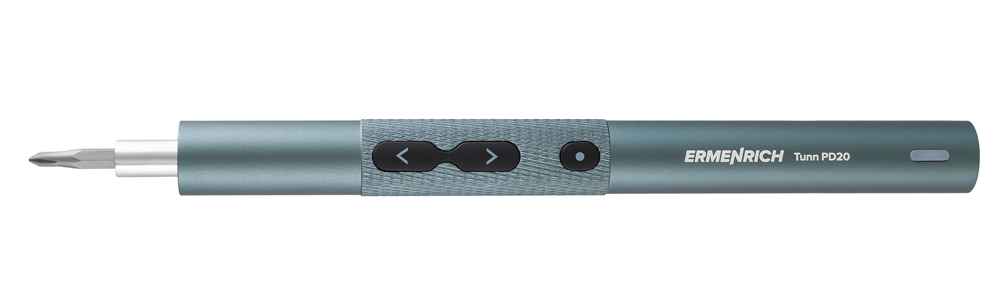 Ermenrich Tunn PD20 je akumulátorový šroubovák pro šroubování a povolování malých spojovacích prvků s možností práce v tmavých a úzkých prostorách. Vhodný pro montáž, demontáž a opravy malých zařízení a přístrojů: notebooků, smartphonů, fotoaparátů a videokamer, brýlí atd. Přístroj je doplněn sadou 24 magnetických bitů a má zabudované LED podsvícení.
