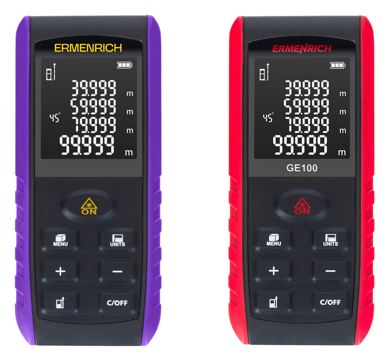 Laserový měřič Ermenrich Reel PRO GE100 je kompaktní přístroj určený pro různé úkoly ve stavebnictví, opravárenství a každodenním životě. Umožňuje určit vzdálenost od bodu k bodu s přesností na 2 milimetry, vypočítat plochu, objem a změřit úhly objektů. Měřič má také funkci Pythagorovy věty – výpočet vzdáleností pomocí mezilehlých měření. To je výhodné v případě, že není možné umístit měřič do požadovaného bodu nebo pokud je v cestě paprsku překážka.