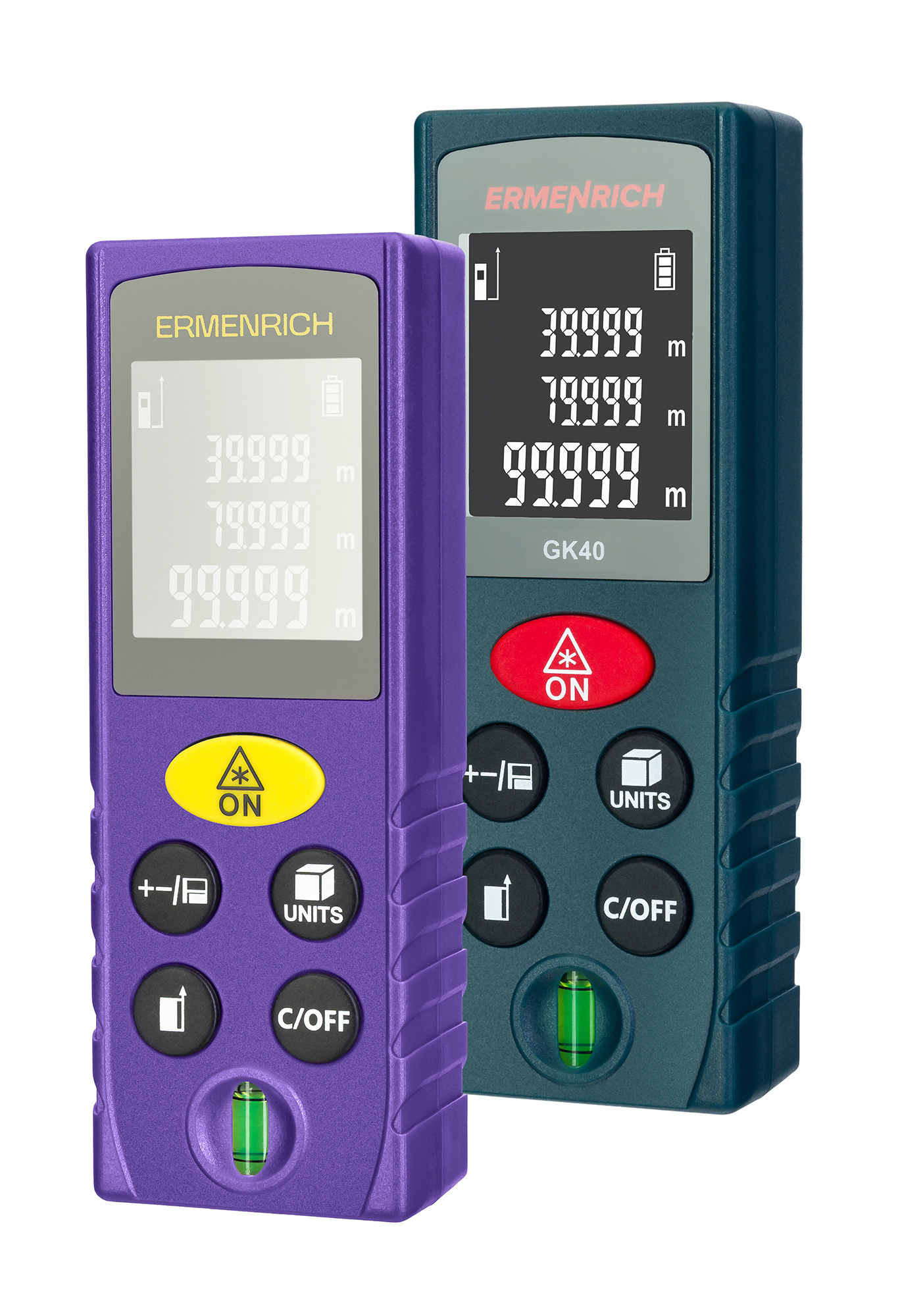 Laserový měřič Ermenrich Reel PLUS GK40 se používá k řešení mnoha stavebních, opravárenských, technických nebo domácích úkolů. Umožňuje provádět přesná měření v rozsahu do 40 metrů a vypočítat objem a plochu. Pro měření v obtížných podmínkách, kdy není možné měřič správně umístit, je k dispozici funkce Pythagorovy věty – pomocí nepřímých měření pomáhá vypočítat vzdálenost k požadovanému bodu. Přístroj má také bublinkovou vodováhu, kterou lze použít pro přesnou instalaci měřiče i jako samostatný nástroj.